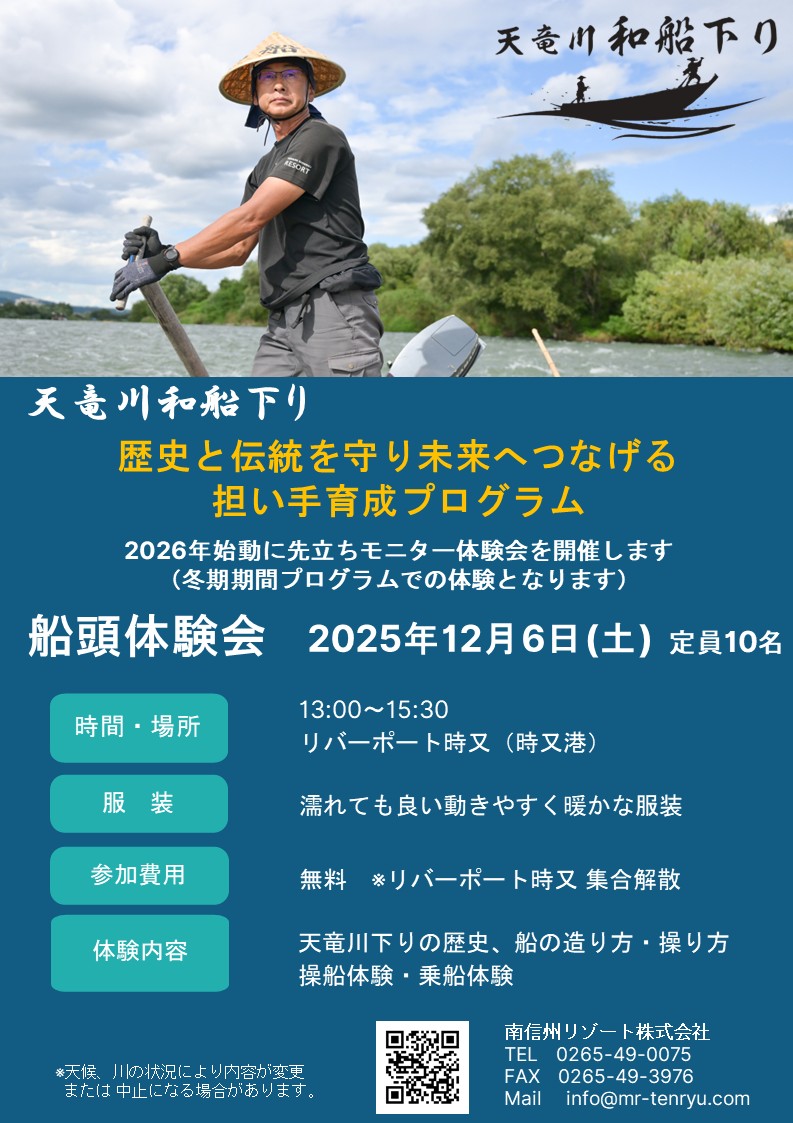 ■問合せ 電話☎0265-49-0075 または メール✉info@mr-tenryu.com